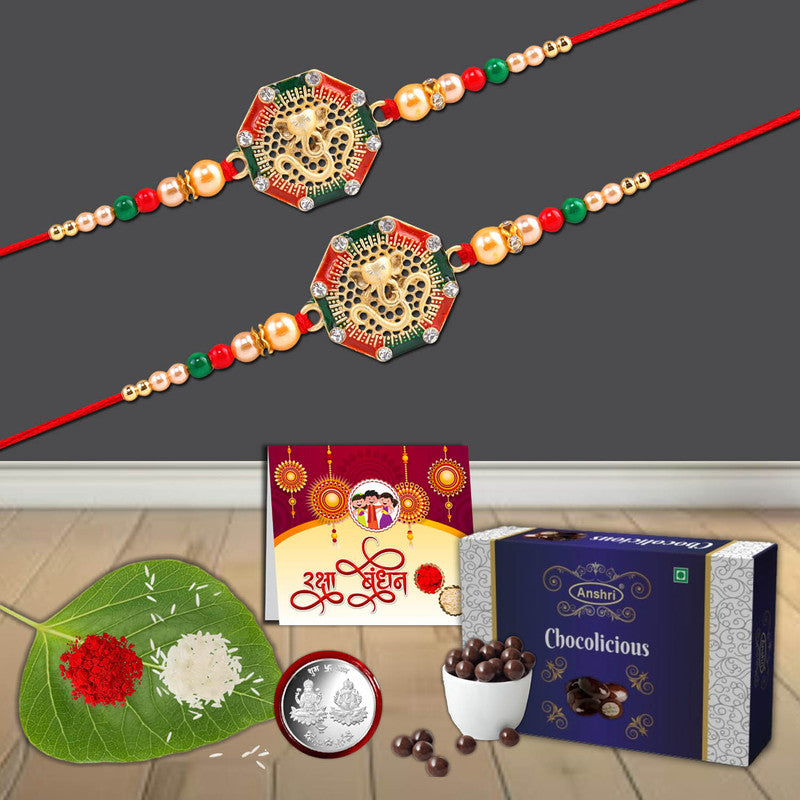 • Roli Chawal: Traditional elements of Roli and Chawal Backed in elegant containers for the ausBicious Rakhi ceremony.