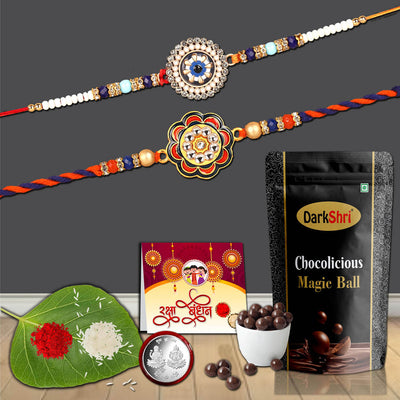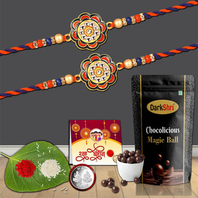 2 Rakhi With Chocolate Pouch Combo