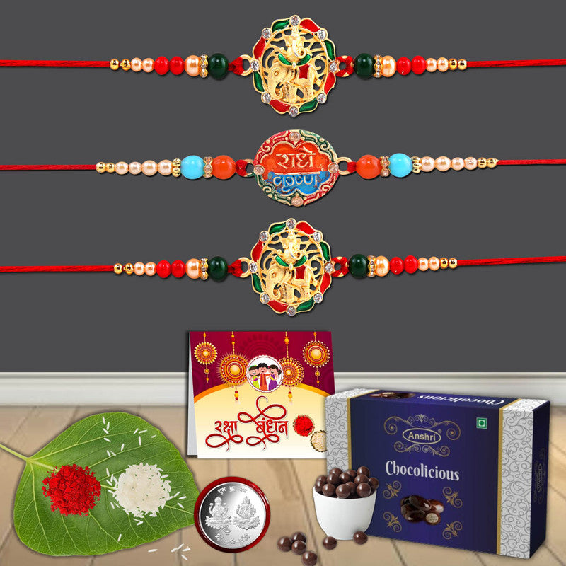 • Rakhi for Brother: A stunning Rakhi designed with care, featuring traditional patterns and vibrant colors, symbolizing the love and protection between siblings.
