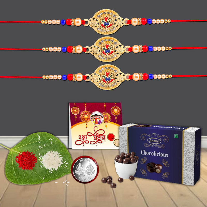 • Roli Chawal: Traditional elements of Roli and Chawal packed in elegant containers for the auspicious Rakhi ceremony.