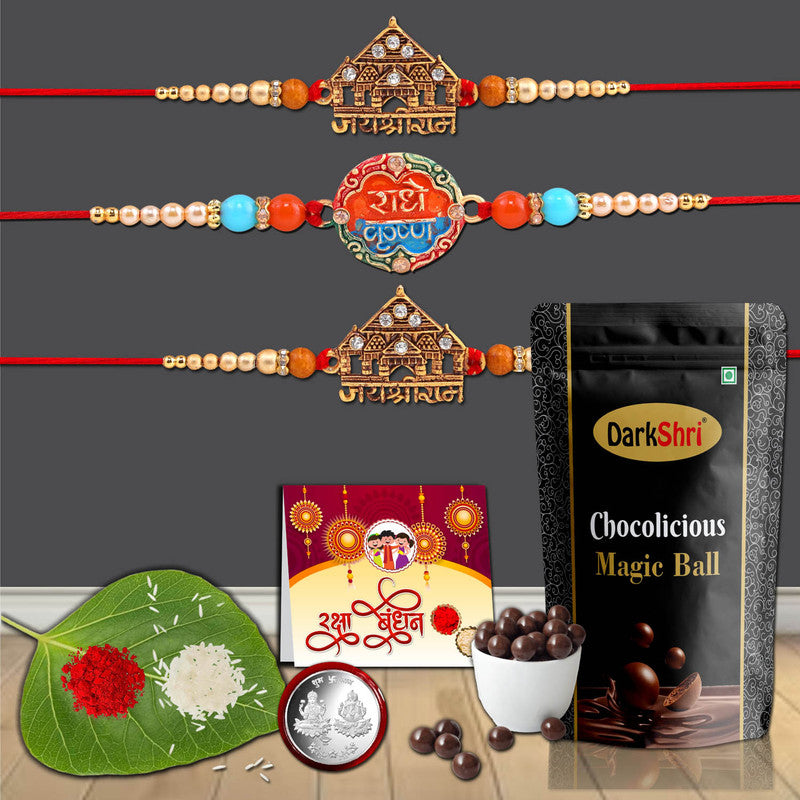 Roli Chawal: Traditional elements of Roli and Chawal packed in elegant containers for the auspicious Rakhi ceremony.