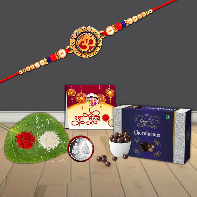 Rakhi for Brother: A stunning Rakhi designed with care, featuring traditional patterns and vibrant colors, symbolizing the love and protection between siblings.