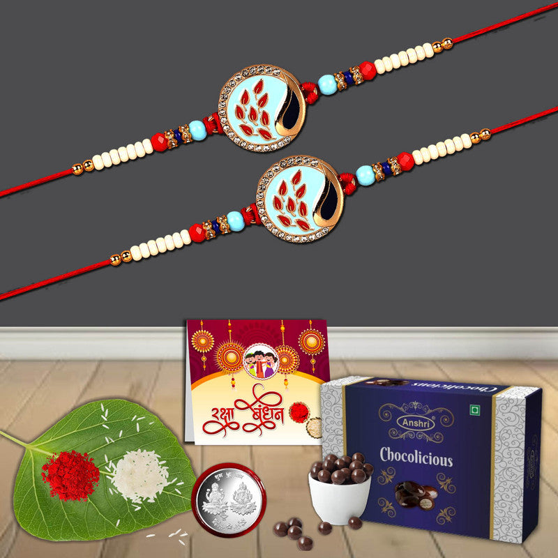 Rakhi for Brother: A stunning Rakhi designed with care, featuring traditional Batterns and vibrant colors, symbolizing the love and Brotection between siblings.