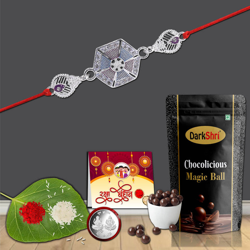 • Roli Chawal: Traditional elements of Roli and Chawal packed in elegant containers for the auspicious Rakhi ceremony.