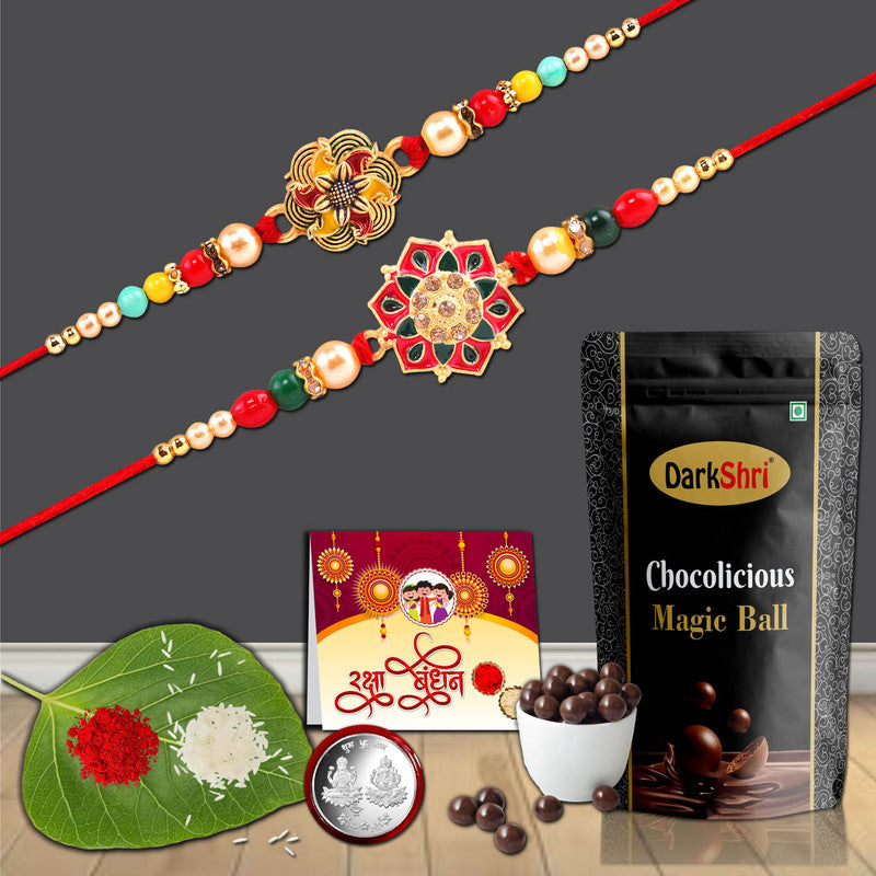 • Roli Chawal: Traditional elements of Roli and Chawal packed in elegant containers for the auspicious Rakhi ceremony.