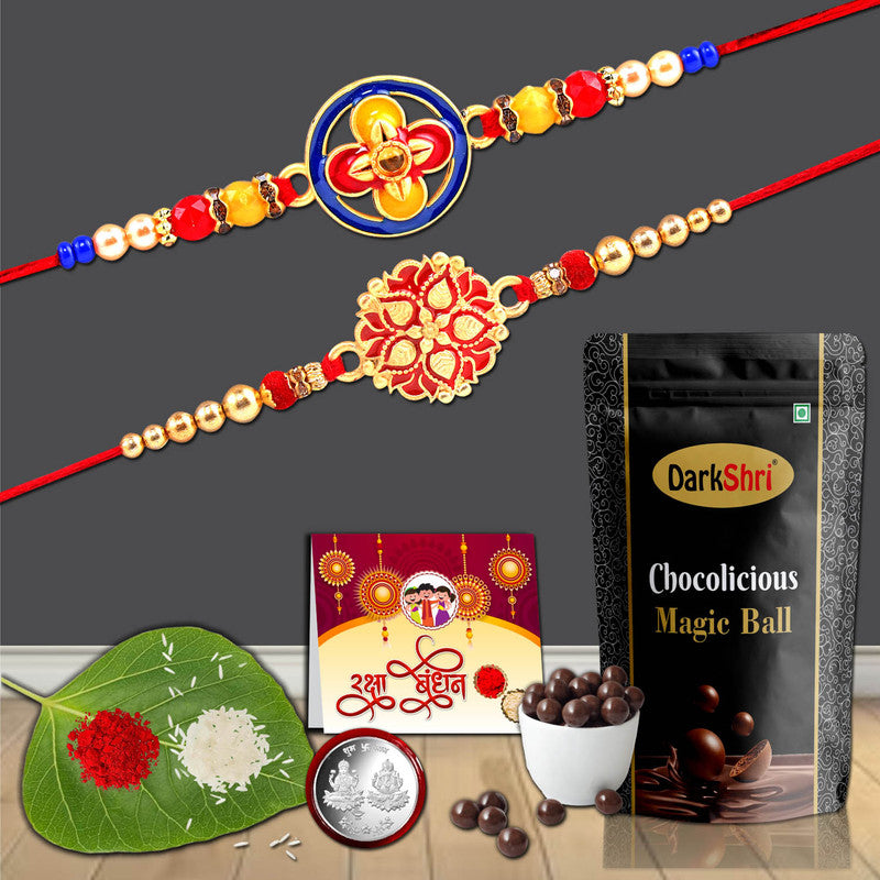 • Roli Chawal: Traditional elements of Roli and Chawal packed in elegant containers for the auspicious Rakhi ceremony.