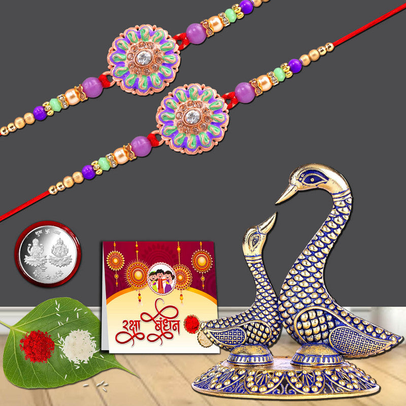 • Roli Chawal: Traditional elements of Roli and Chawal packed in elegant containers for the auspicious Rakhi ceremony.