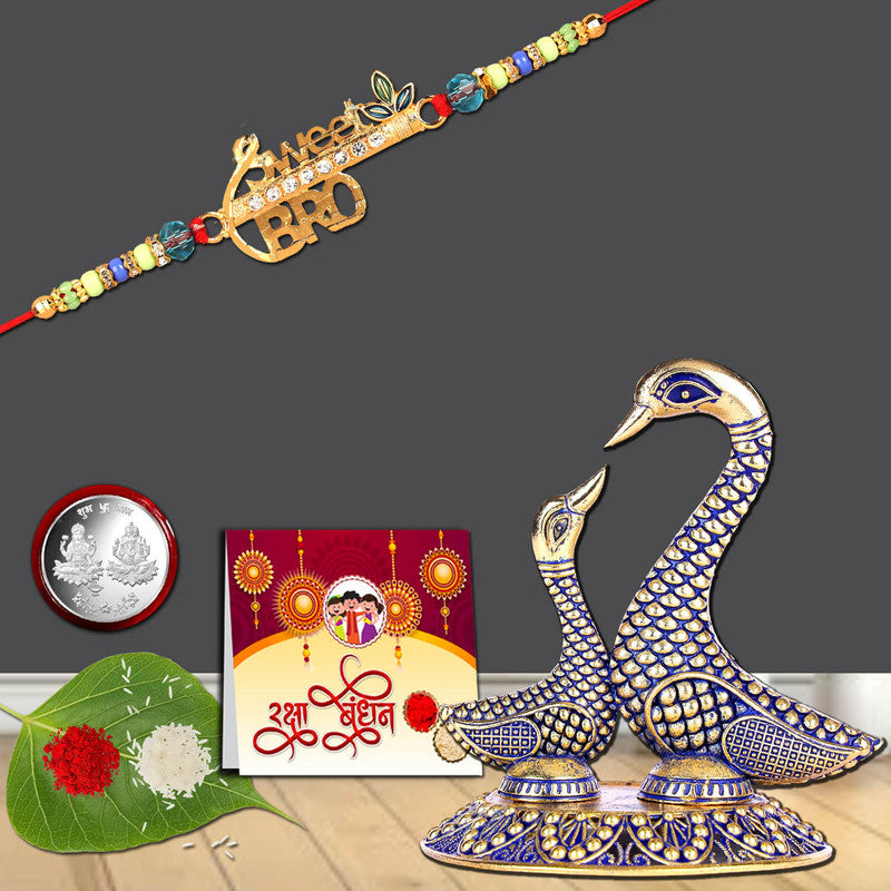 • Rakhi for Brother: A stunning Rakhi designed with care, featuring traditional patterns and vibrant colors, symbolizing the love and protection between siblings.