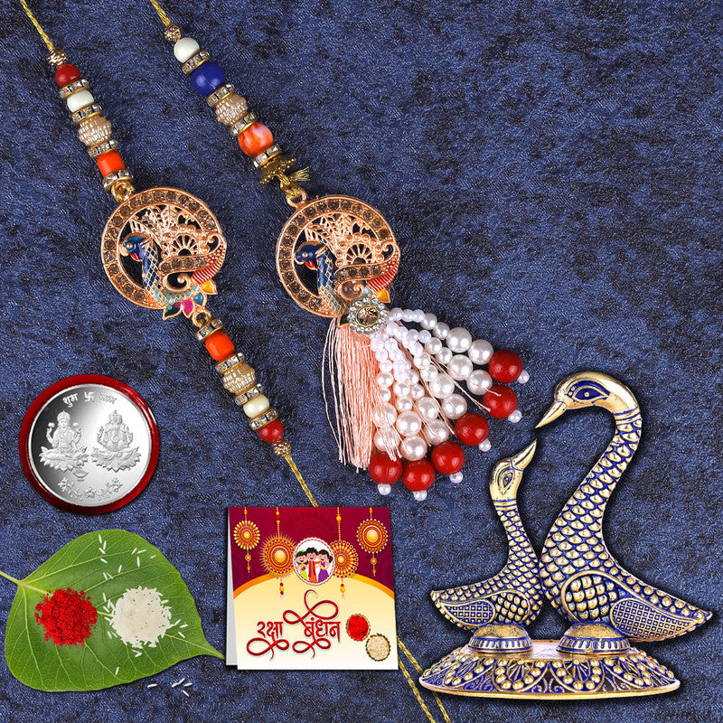 Rakhi for Brother: A stunning Rakhi designed with care, featuring traditional patterns and vibrant colors, symbolizing the love and protection between siblings.