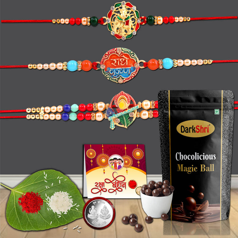 • Roli Chawal: Traditional elements of Roli and Chawal packed in elegant containers for the auspicious Rakhi ceremony.