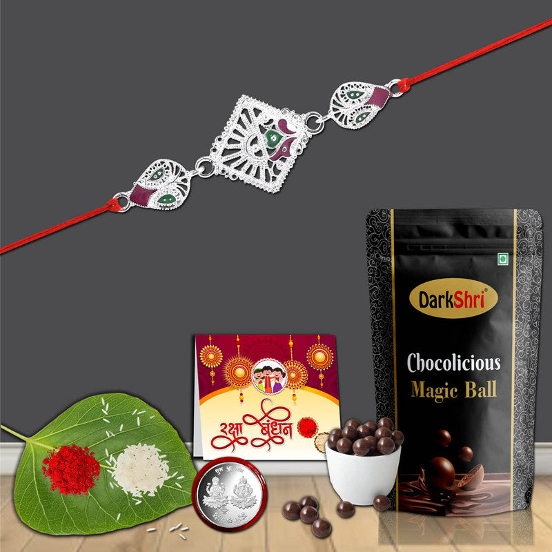 • Roli Chawal: Traditional elements of Roli and Chawal packed in elegant containers for the auspicious Rakhi ceremony.