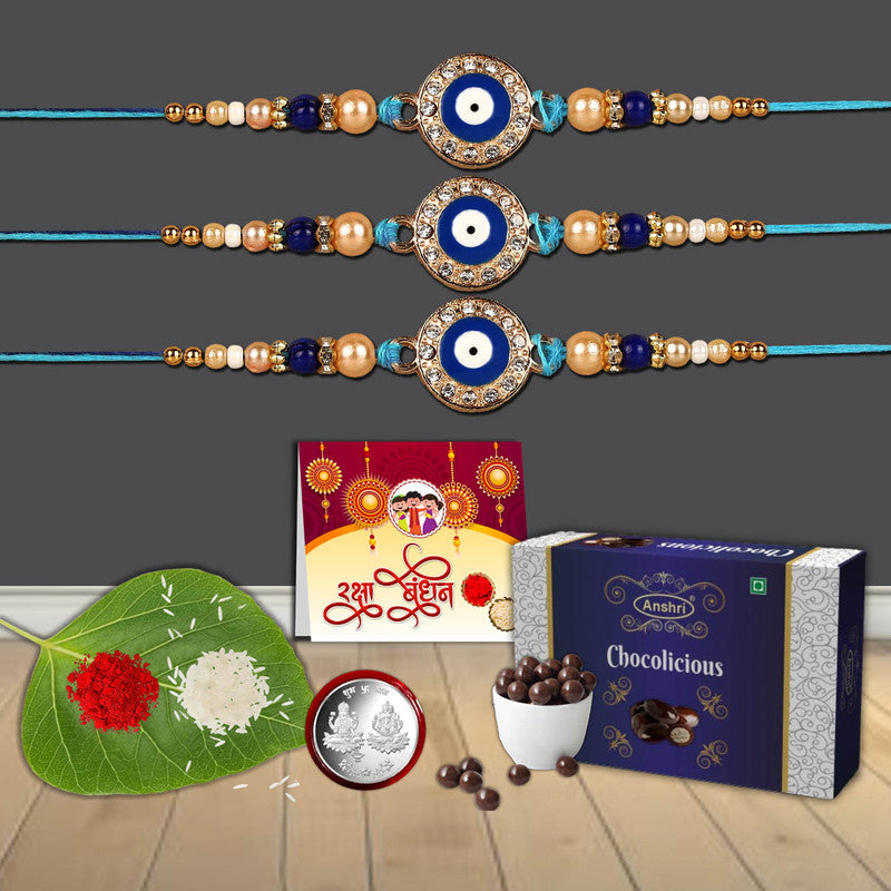 Rakhi for Brother: A stunning Rakhi designed with care, featuring traditional patterns and vibrant colors, symbolizing the love and protection between siblings.