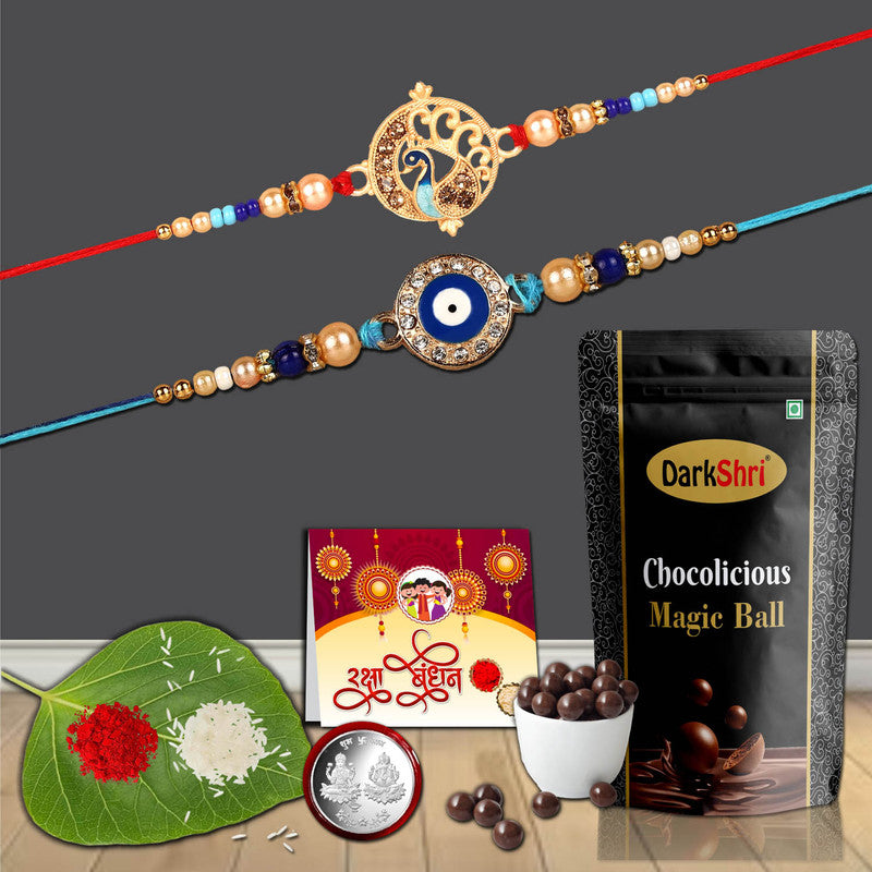 • Roli Chawal: Traditional elements of Roli and Chawal packed in elegant containers for the auspicious Rakhi ceremony.