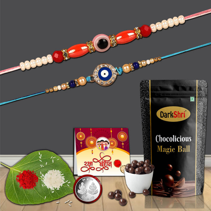 • Roli Chawal: Traditional elements of Roli and Chawal packed in elegant containers for the auspicious Rakhi ceremony.